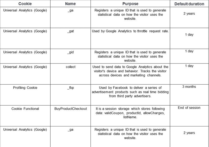 Types of cookies utilized, reasons for using cookies, and impact of cookies on the user